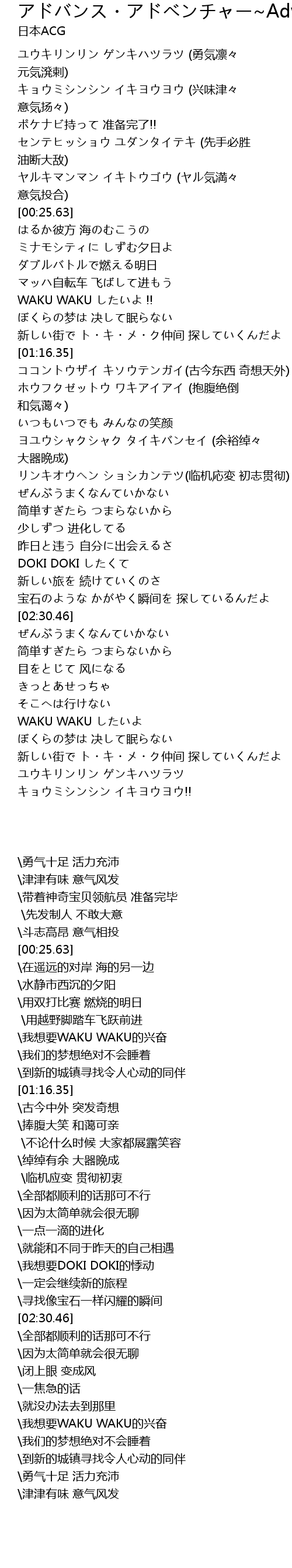 | [00:50.65] | WAKU WAKU したいよ !! |