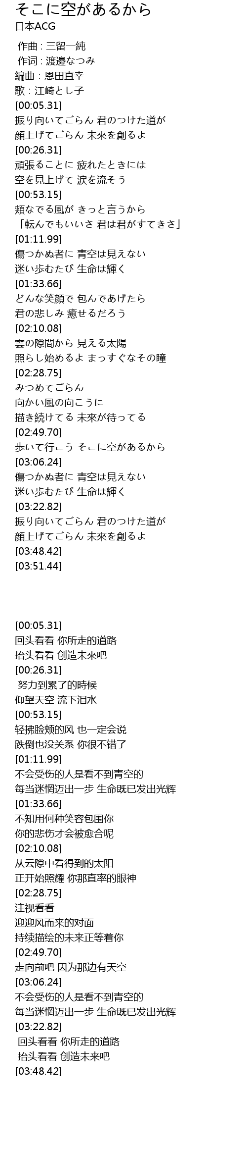 | [02:54.91] | 歩いて行こう そこに空があるから |