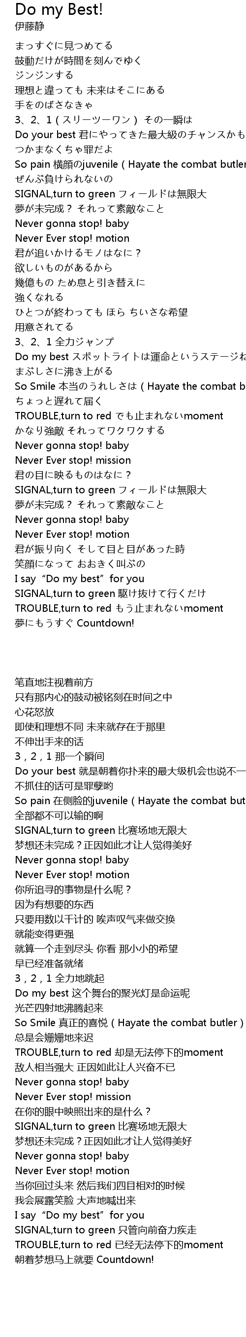 | [00:39.70] | Do your best 君にやってきた最大級のチャンスかも |