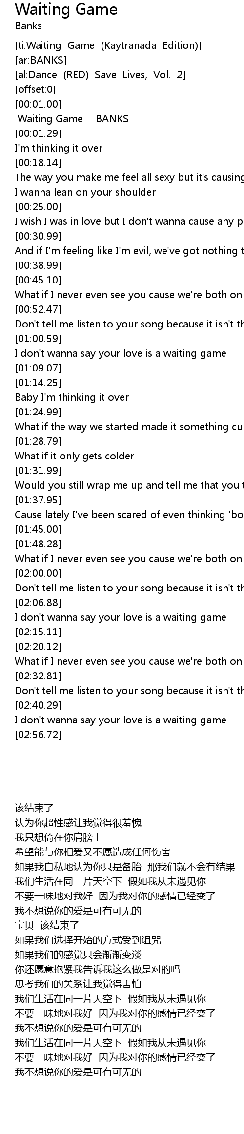 | [00:01.28] | Waiting Game BANKS |