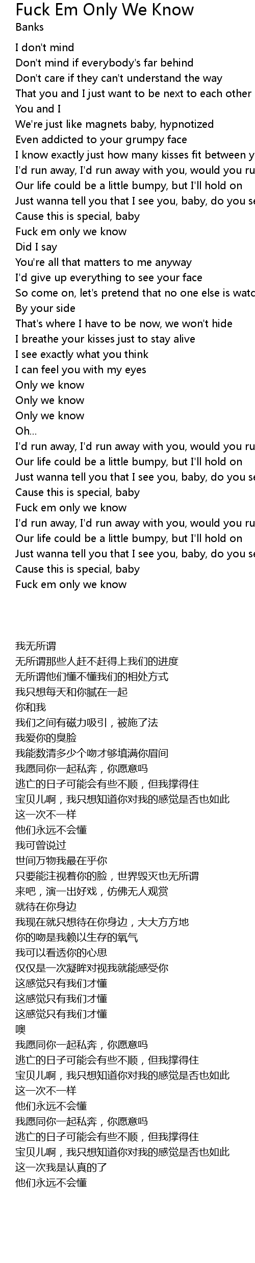 | [01:15.64] | Fuck em only we know |
