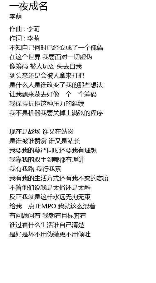 | 作词 : 李萌 | |
