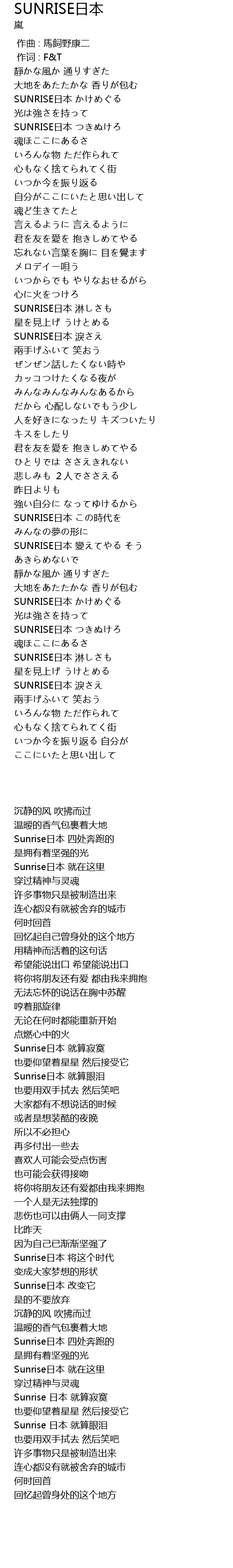 | [01:16.03] | SUNRISE日本 淋しさも |
