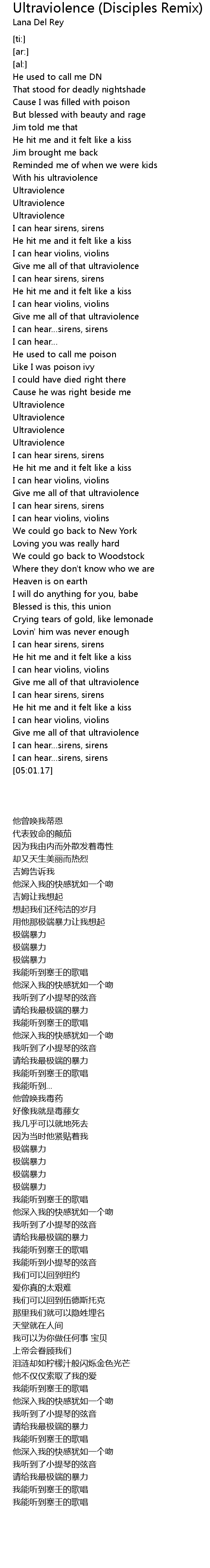 | [01:47.26] | Give me all of that ultraviolence |
