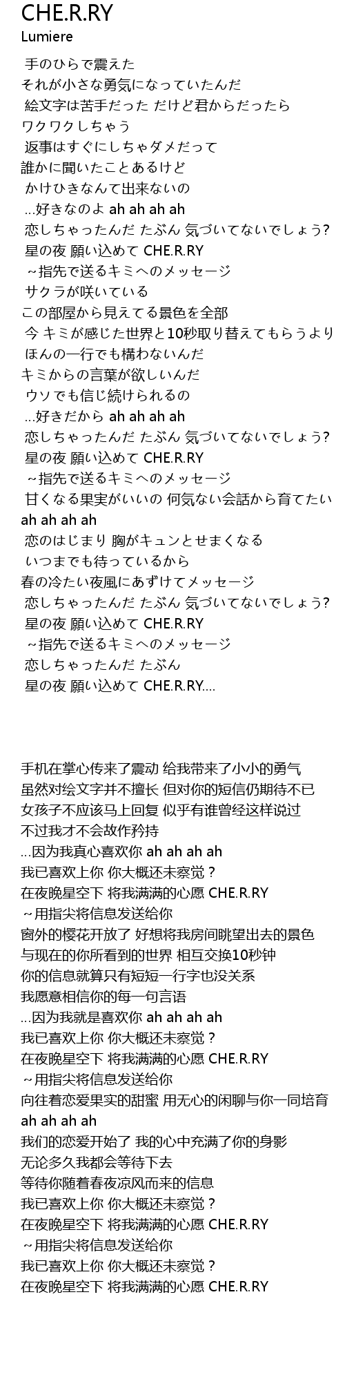 | [03:18.759] | 星の夜 願い込めて CHE.R.RY.... |