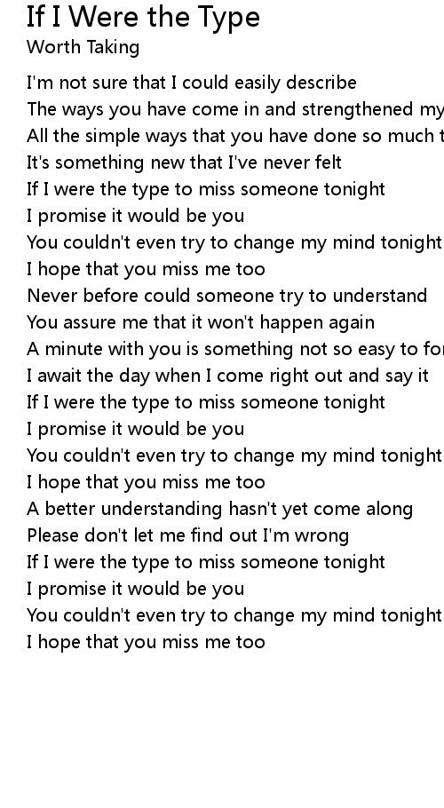 If I were the type to miss someone tonight |
