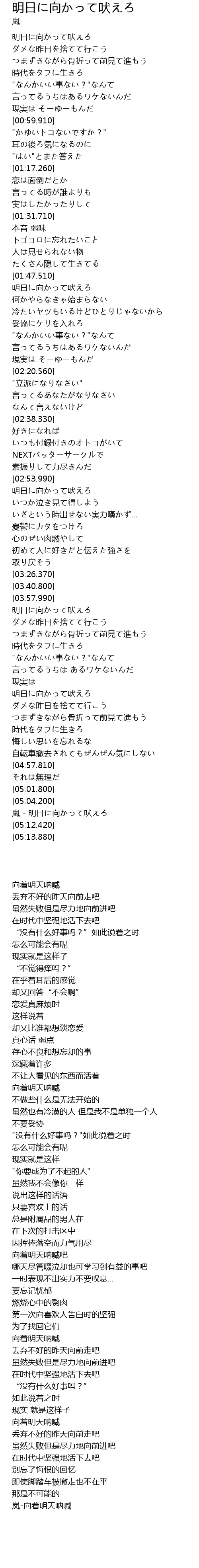 | [05:07.050] | 嵐 - 明日に向かって吠えろ |