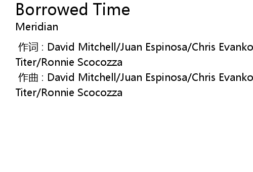 | [00:00.000] | 作曲 : David Mitchell/Juan Espinosa/Chris Evanko/Chris Titer/Ronnie Scocozza |