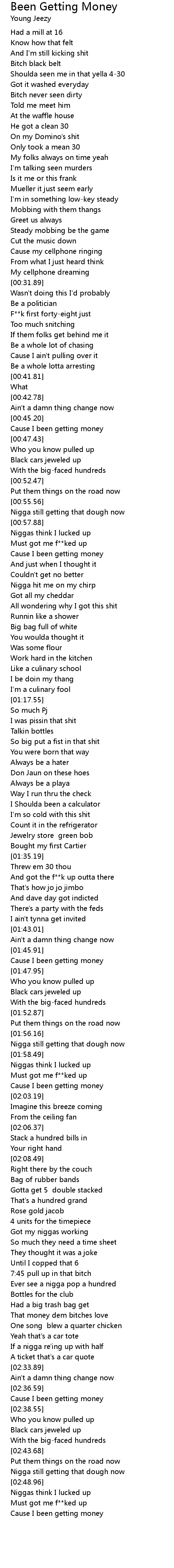 Cause I been getting money |