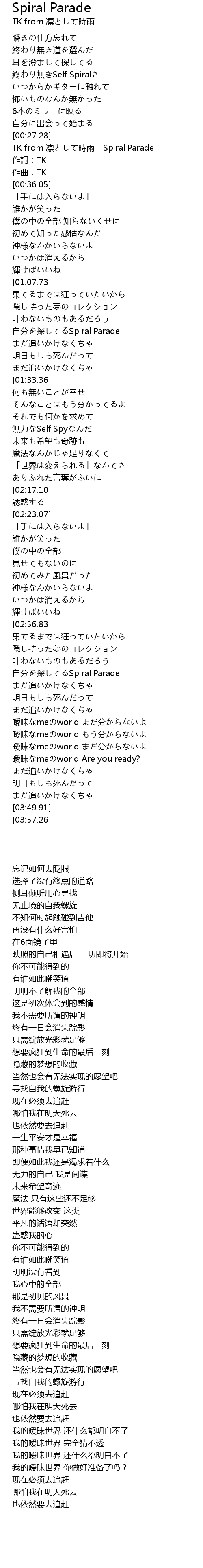 | [03:08.16] | zì fēn tàn Spiral Parade |