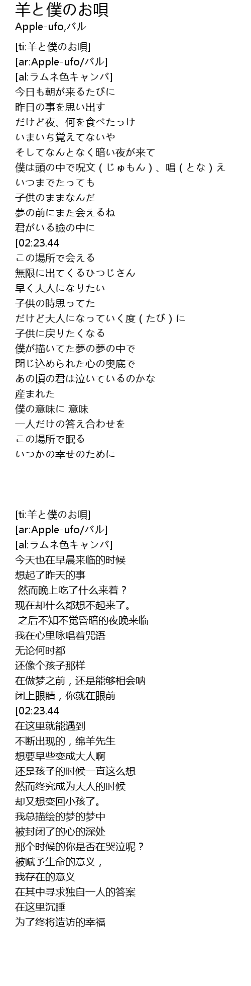 | [ti:羊と僕のお唄] | |