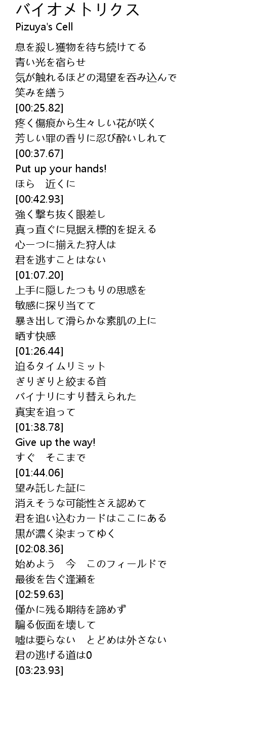 | [00:13.62] | 息を殺し獲物を待ち続けてる |