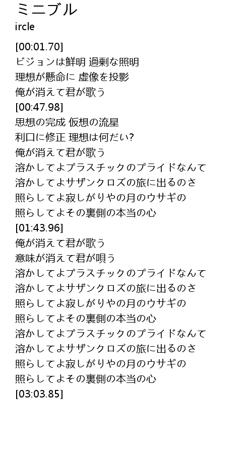 | [02:47.03] | 溶かしてよプラスチックのプライドなんて |