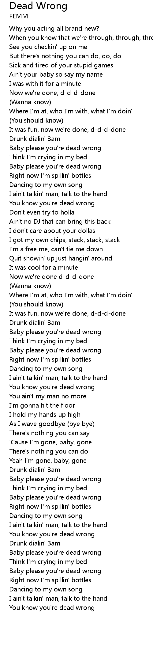You know you're dead wrong |