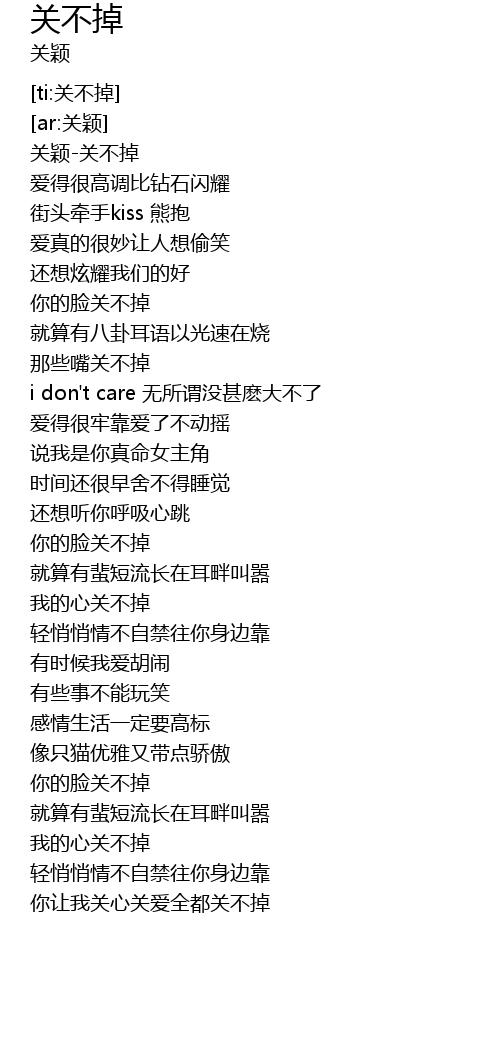 | [00:01.970] | 关颖-关不掉 |