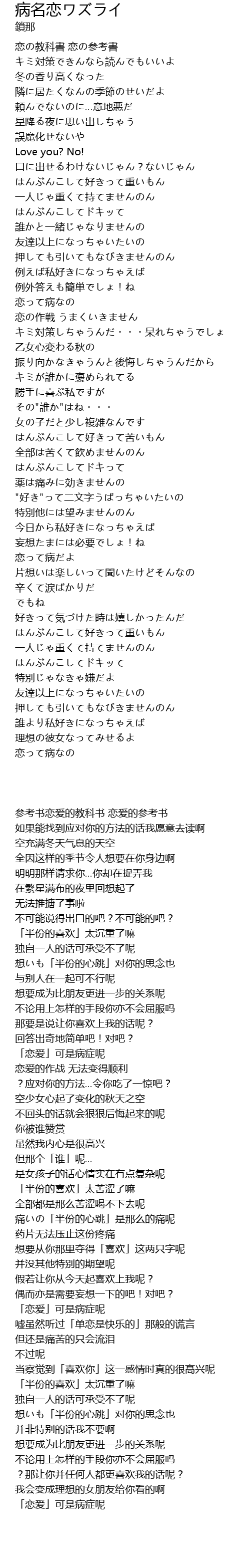 | [02:50.64] | 恋って病だよ |