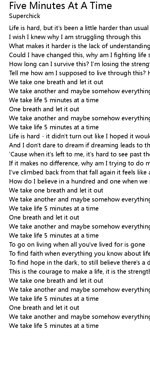 We take life 5 minutes at a time |