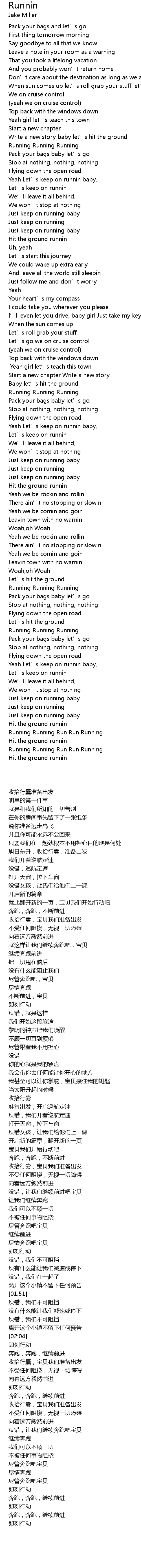 | [01:32] | Yeah Let’s keep on runnin baby, |