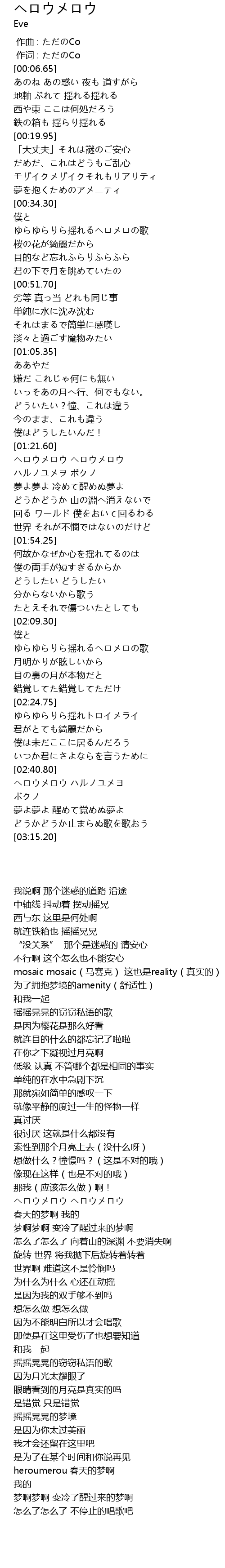 | [00:38.95] | ゆらゆらりら揺れるヘロメロの歌 |