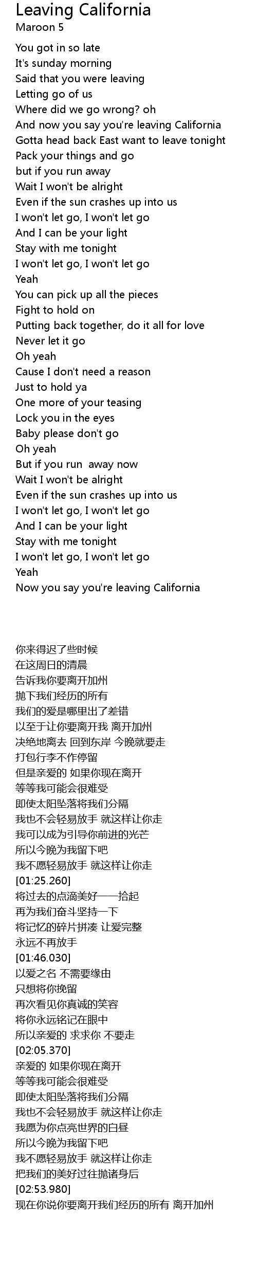 | [00:19.350] | And now you say you're leaving California |