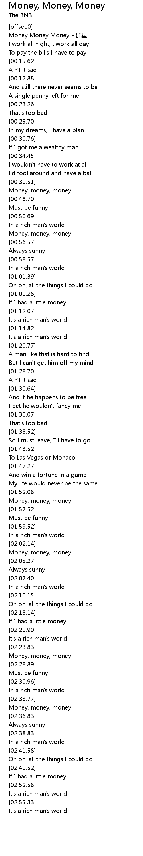 | [00:47.70] | Money, money, money |