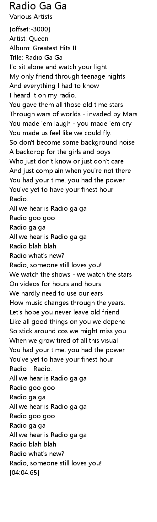 Title: Radio Ga Ga |
