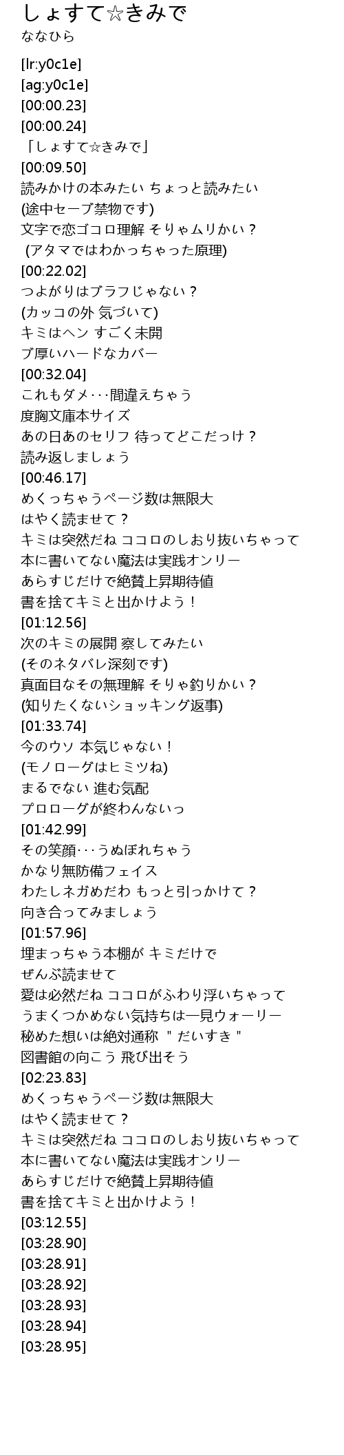 | [00:00.98] | 「しょすて☆きみで」 |