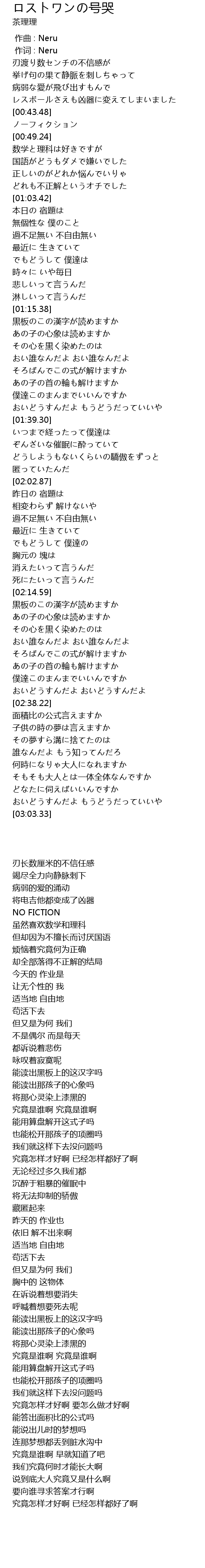 | [00:01.00] | 作词 : Neru |