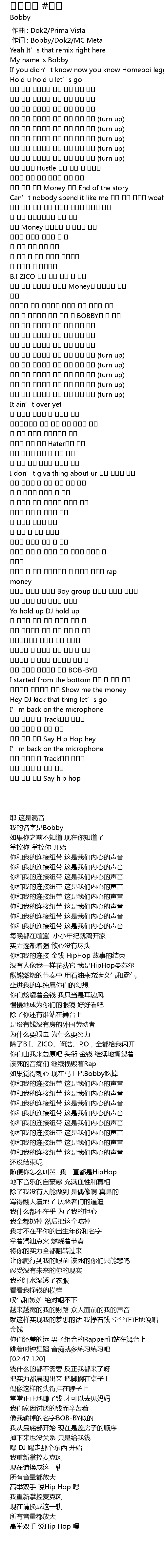 | [00:01.00] | 作词 : Bobby/Dok2/MC Meta |