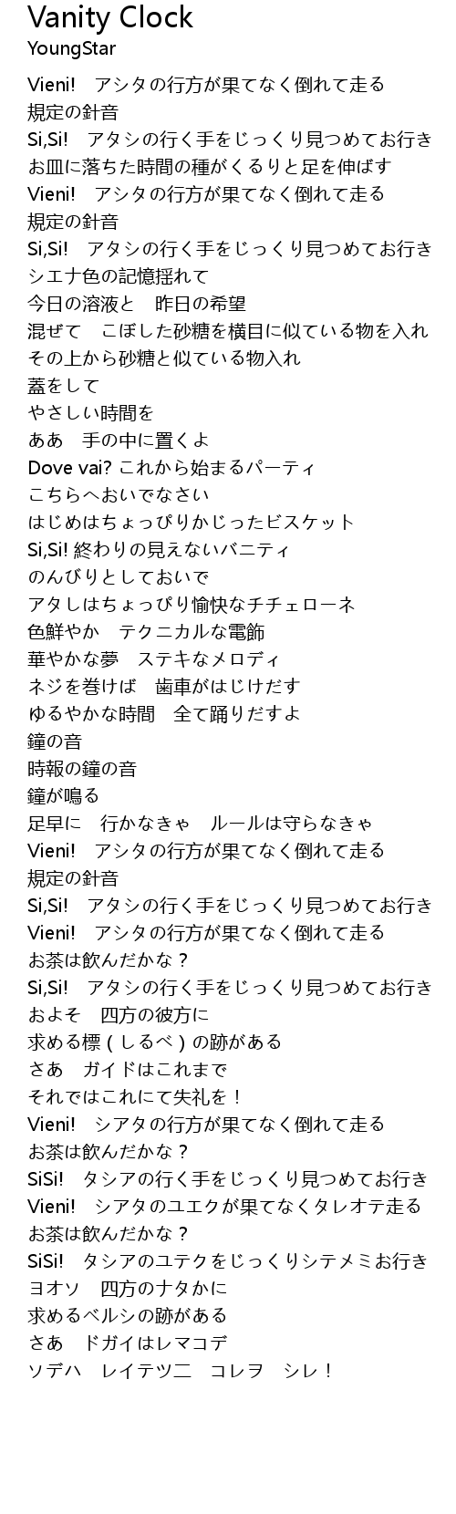 | [02:10.24] | Si,Si! 終わりの見えないバニティ |