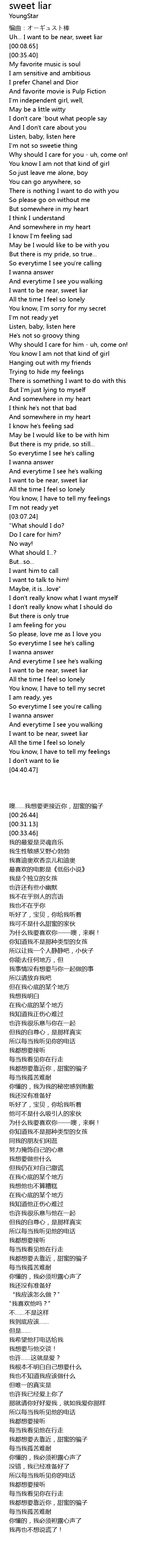 | [00:05.17] | Uh... I want to be near, sweet liar |
