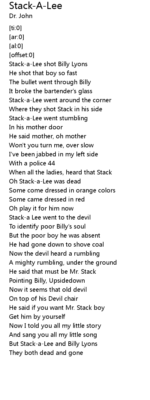 Oh Stack-a-Lee was dead |
