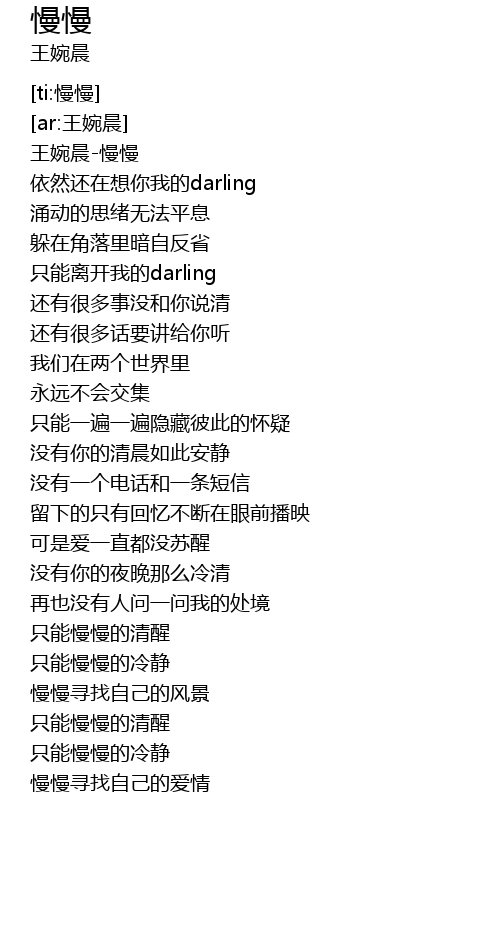 | [00:00.381] | 王婉晨-慢慢 |
