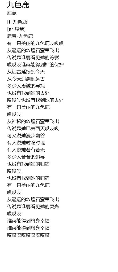 | [00:52.284] | 有一只美丽的九色鹿哎哎哎 |
