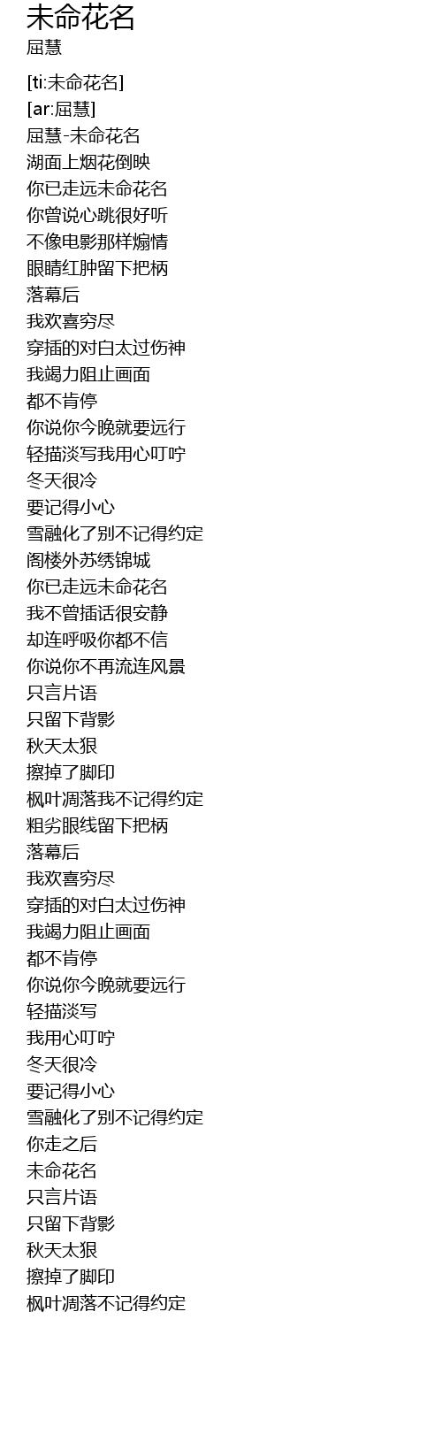 | [00:01.403] | qū huì wèi mìng huā míng |