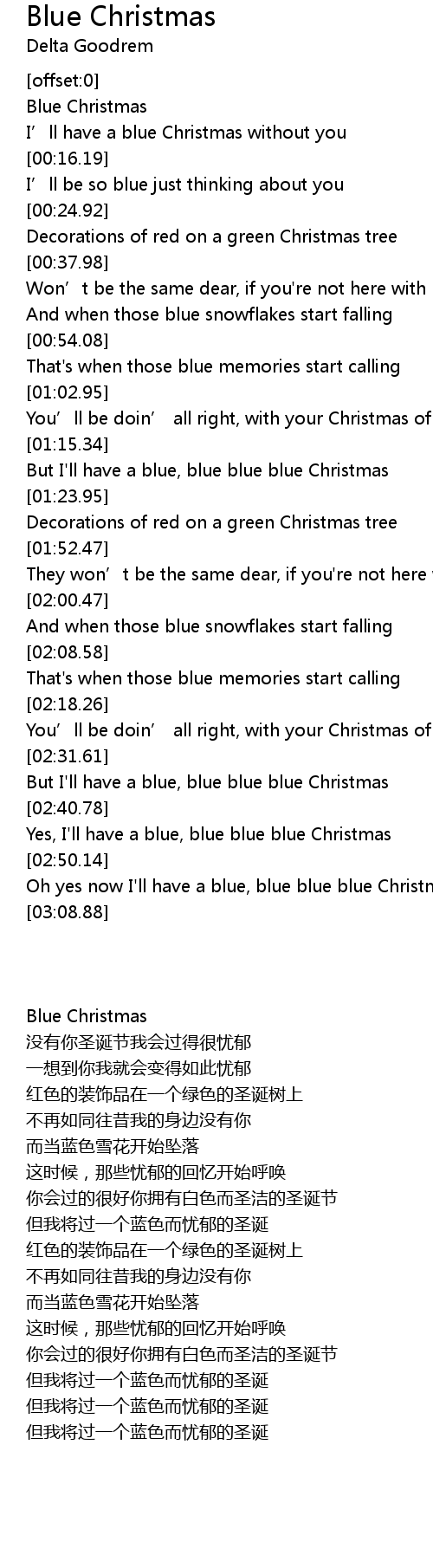 | [02:50.95] | Oh yes now I'll have a blue, blue blue blue Christmas |