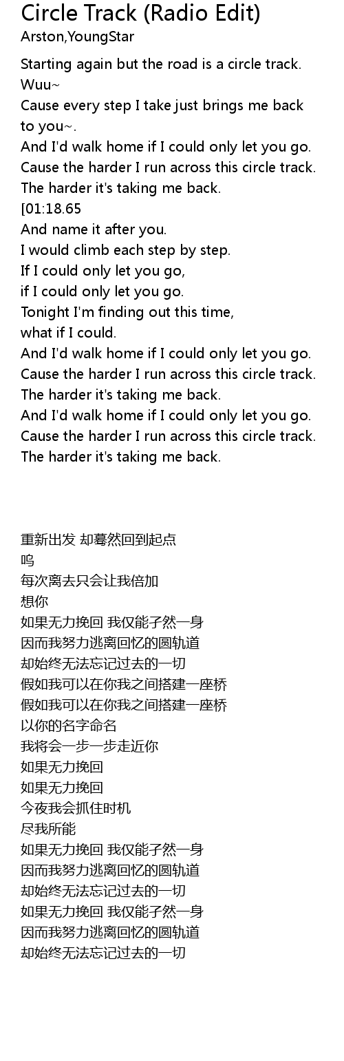 | [00:30.00] | Cause the harder I run across this circle track. |