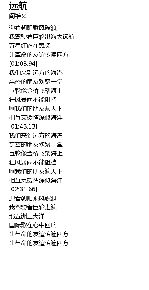 | [00:42.28] | 我驾驶着巨轮出海去远航 |