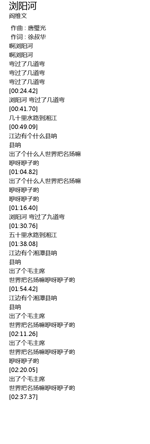 | [00:35.33] | 浏阳河 弯过了几道弯 |