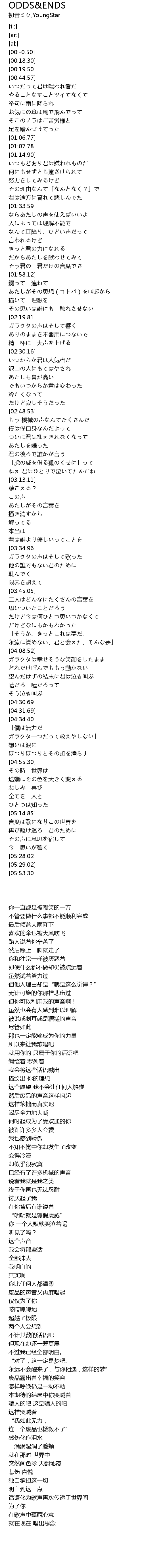 | [00:45.91] | いつだって君は嗤われ者だ |