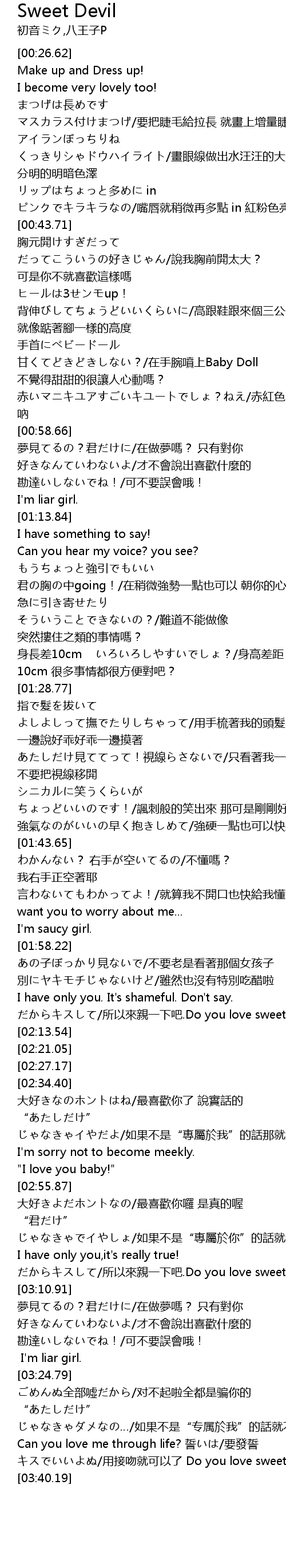 | [03:37.17] | yong jie wen jiu ke yi le Do you love sweet devil? |