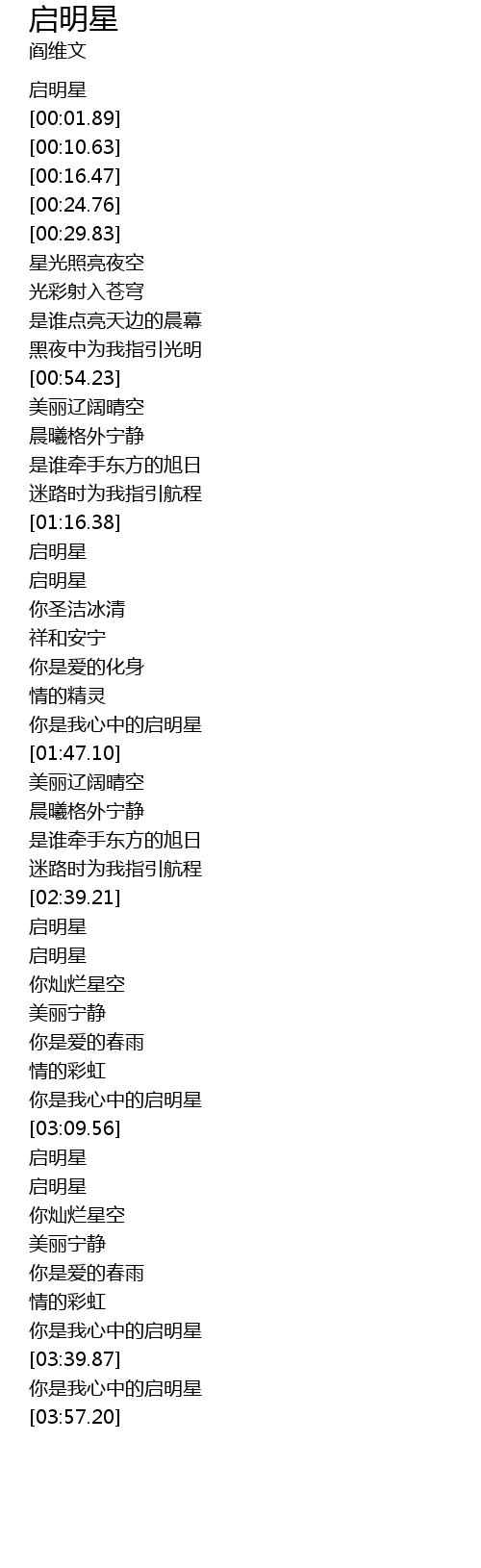 | [03:33.49] | 你是我心中的启明星 |
