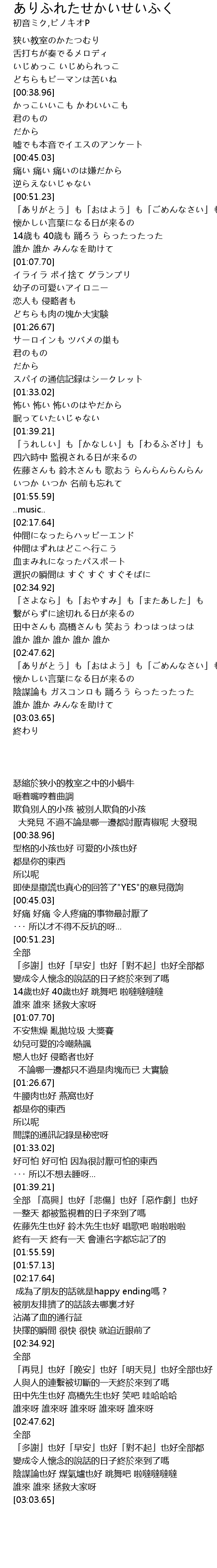 | [00:33.01] | いじめっこ いじめられっこ |