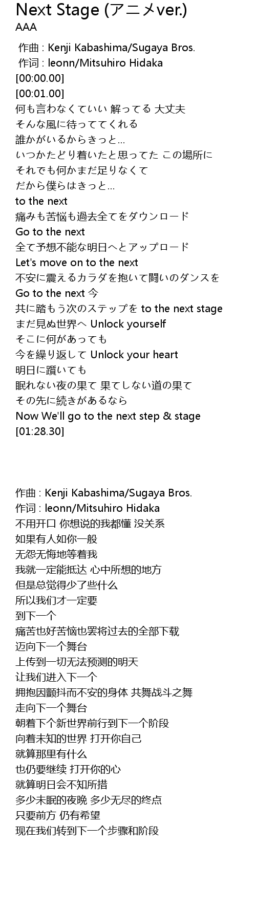 | [00:54.63] | 共に踏もう次のステップを to the next stage |