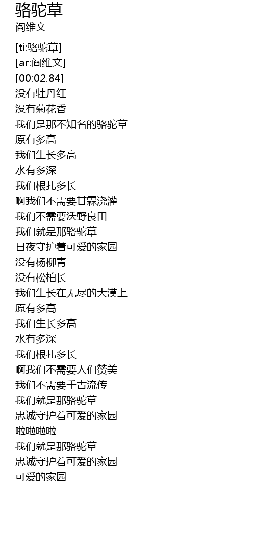 | [01:24.449] | 我们就是那骆驼草 |