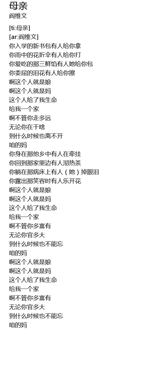| [ti:母亲] | |