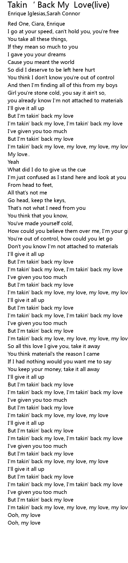 I'm takin' back my love, I'm takin' back my love |