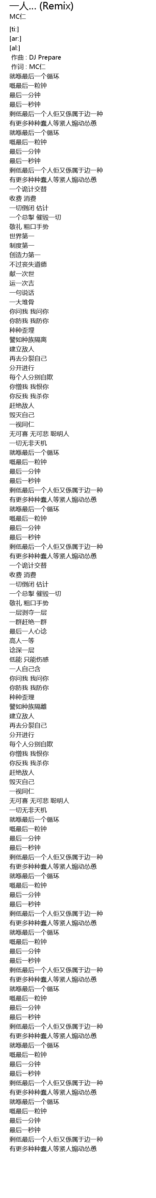 | [00:01.00] | 作词 : MC仁 |