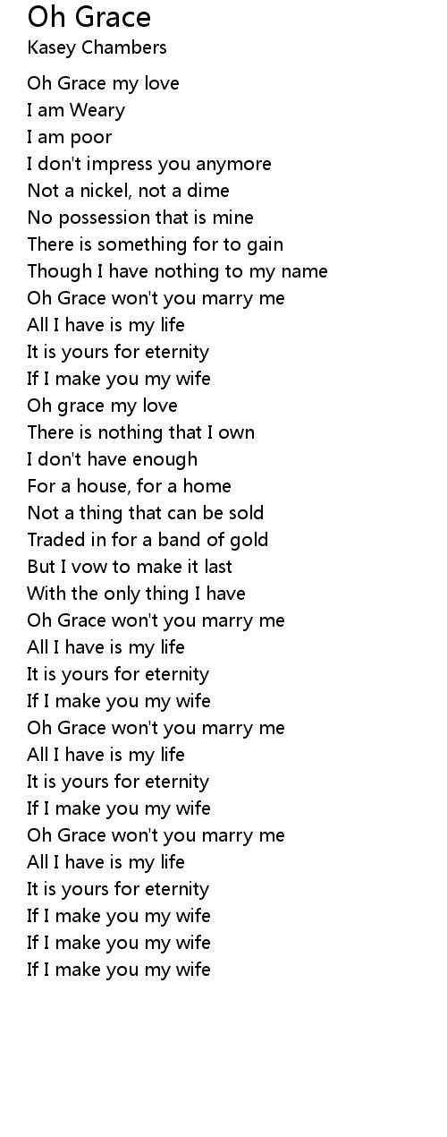 Oh Grace won't you marry me |