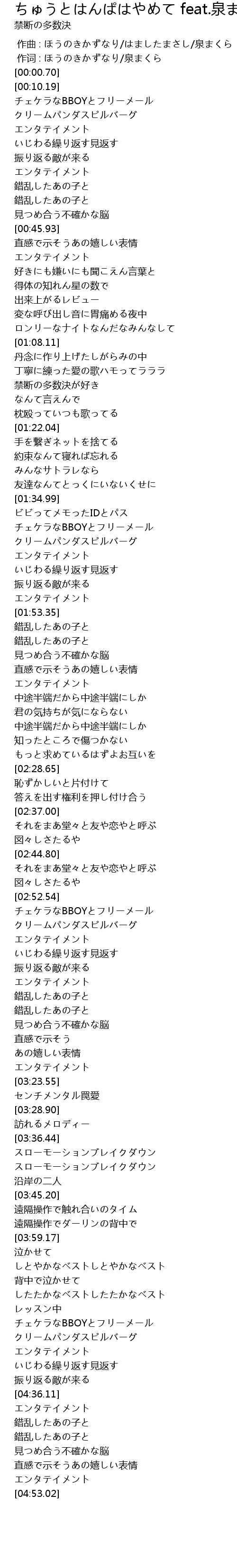 | [01:16.92] | 禁断の多数決が好き |